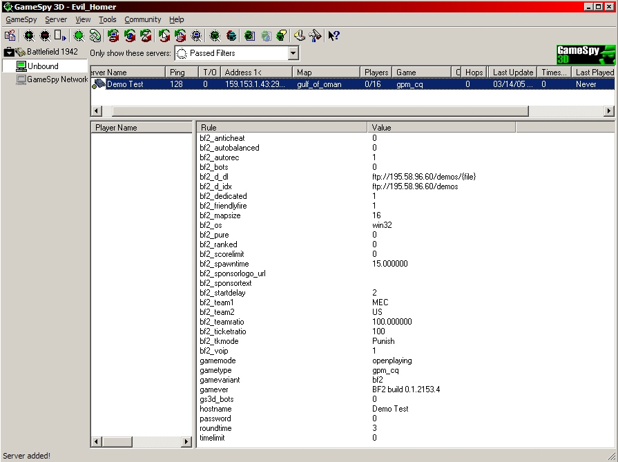 Jeden z użytkowników nzbattlefield.com, w czasie prac nad nową przeglądarką serwerów trafił na serwery EA na których najprawdopodobniej odbywało się testowanie dema BF2!!!