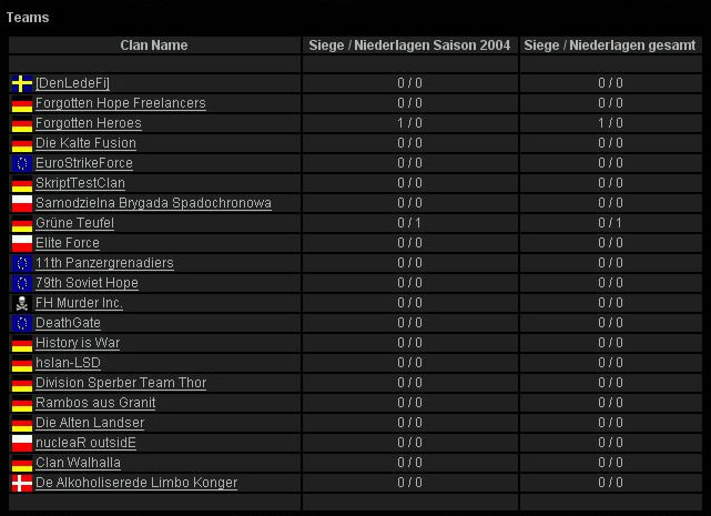 [ Arische Kämpfer ]. Jest to znany klan FH wyznajacy teorie postnazistowskie o czym świadczy ich nazwa i to ze rozgrywają mecze jedynie na niemieckich mapach a serwer był wielokrotnie bojkotowany przez graczy za np. wyrzucenie za nick z .pl na końcu. Ku chwale ojczyzny mecz zostal wygrany w pięknym stylu przez Polaków z wynikiem 875:703 na mapach Arnhem i Bocage.Sytuacja w FH-Lidze nie jest wesoła - z rozgrywek wycofało sie dużo klanów miedzy innymi słynni