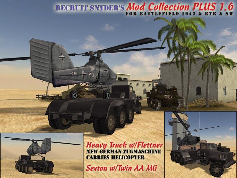 Pojawiła się finalna wersja mało znanego wszystkim moda Recruit Snyder's Mod Collection. Jest to produkcja z serii niespodzianek, mimo, że mało o niej wiemy przedstawia się rewelacyjnie i jeśli będzie dalej rozwijana to może z powodzeniem konkurować z Forgotten Hope. Każdy prawdziwy fan Battlefield 1942 powinien to zobaczyć. Zadowoleni będą też gracze single, gdyż produkcja wspiera boty i radzą sobie one dość dobrze z nowym sprzętem.