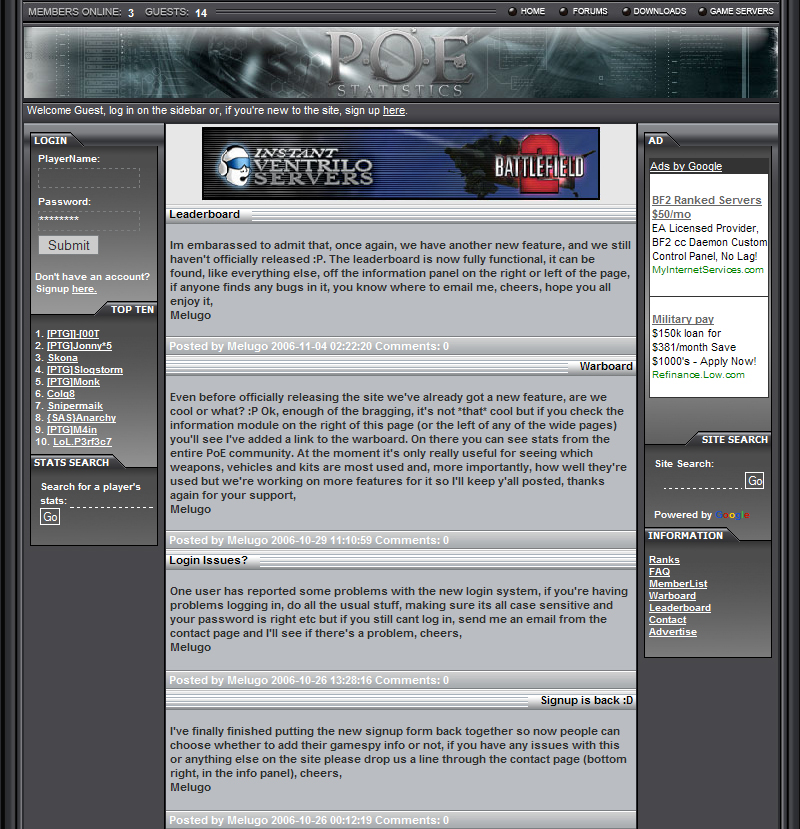 Twórcy PoE2 oficjalnie ogłosili powstanie systemu statystyk dla swojego moda. System ten w przeciwieństwie do znanego z Battlefield 2 nie przyznaje medali ani odznaczeń. Zainteresowani - po uprzedniej rejestracji - będą mogli przeglądać swoje "akta" na tej stronie.