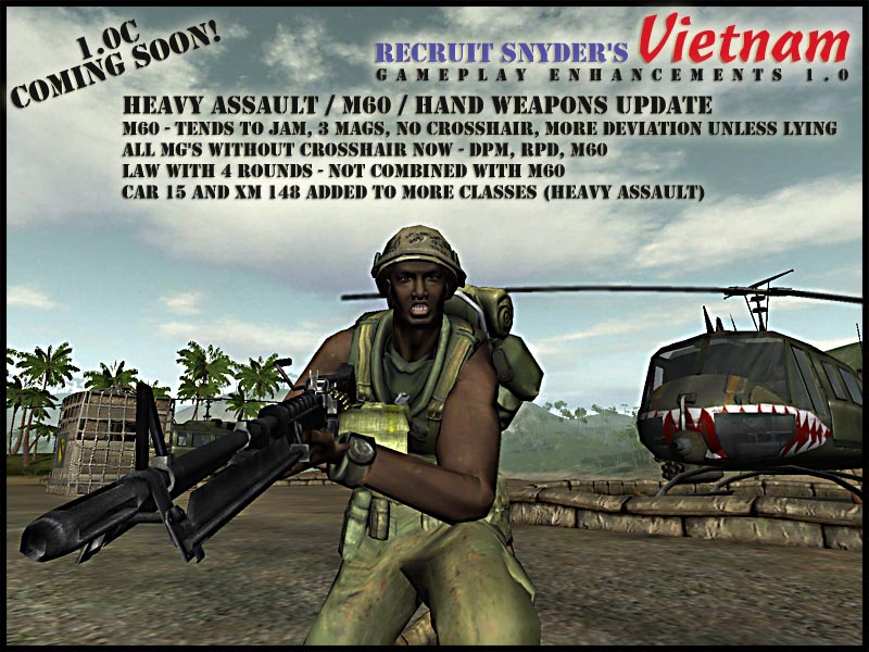 Do pobrania kolejna wersja tej mini modyfikacji do Battlefield Vietnam. Całość nabiera coraz lepszych widoków i rozmiarów, jednak nadal jest to malutki pliczek ale dający dużo radości i zmian w grze.