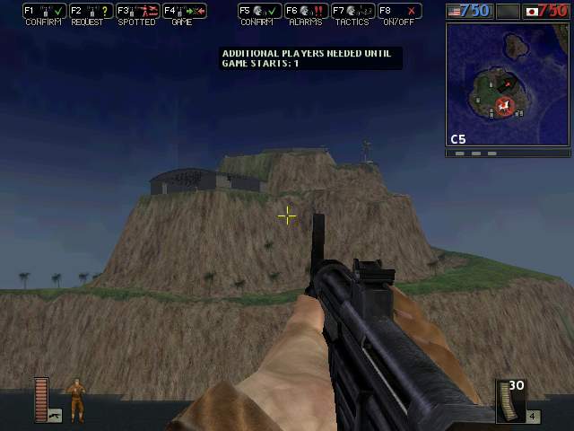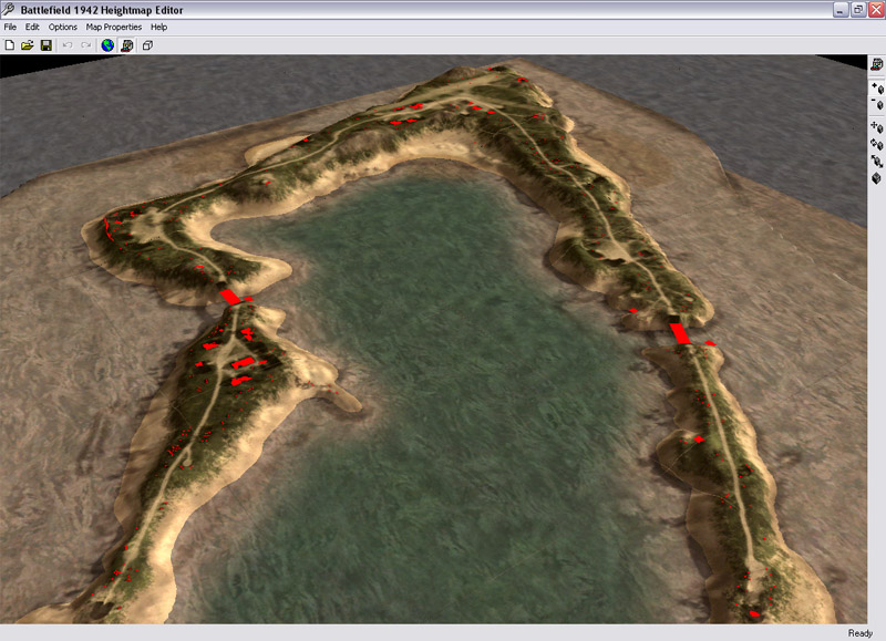 Sporo wysepek, na jednej z większych baza allied, na drugiej baza axis. Walki toczą się o największa wyspę, gdzie na wzgórzu bardzo trudnym do zdobycia podobno jest jakaś "cytadela". Fatalna jakość tekstur, sporo bugów (np. drabina, z której nie sposób zejść). Generalnie - dobra koncepcja, ale złe wykonanie. Plik ma niecałe 1,5MB, więc można ściągnąć jako ciekawostkę, jeśli ktoś ma życzenie.